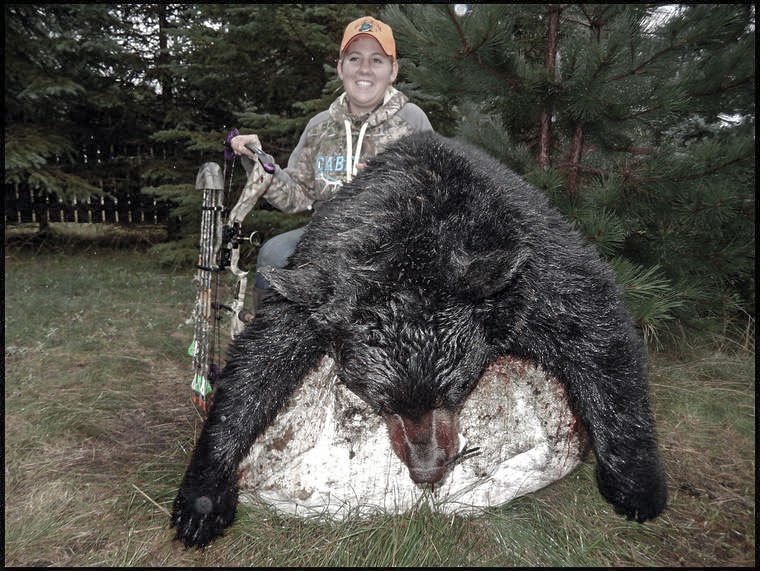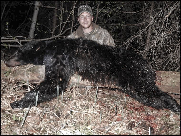 Our BOW HUNTERS hunt in bow only areas giving you a 12-23 yard shot. Groups using both bow and rifles will be set up accordingly. You have an excellent chance of bagging a BLACK BEAR which has a skull exceeding 18 inches giving your trophy a P & Y status. Bows with 55-75 pounds of pull are recommended.